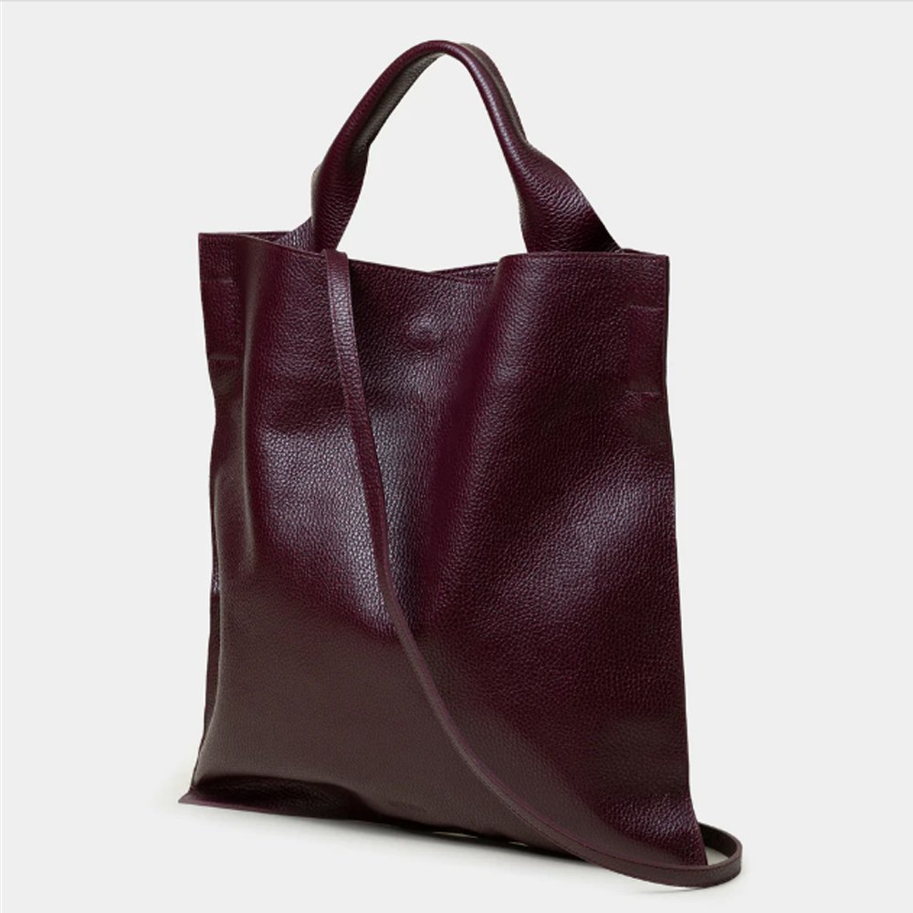 Arron Archie Bordeaux Leather Shopper Bag in grain leather is the perfect accessory for those who seek a balance of elegance, practicality, and versatility. Its refined design allows the option to be carried on the shoulder, by hand or as a crossbody. Moreover, Arron Archie Bordeaux Leather Shopper Bag adapts to every occasion, from work to leisure. Furthermore, its soft and spacious structure offers maximum comfort without sacrificing style, uniting Italian craftsmanship and quality. Arron Archie Bordeaux Leather Shopper Bag is designed to be worn on the shoulder, by hand or as a crossbody bag for maximum freedom of use.