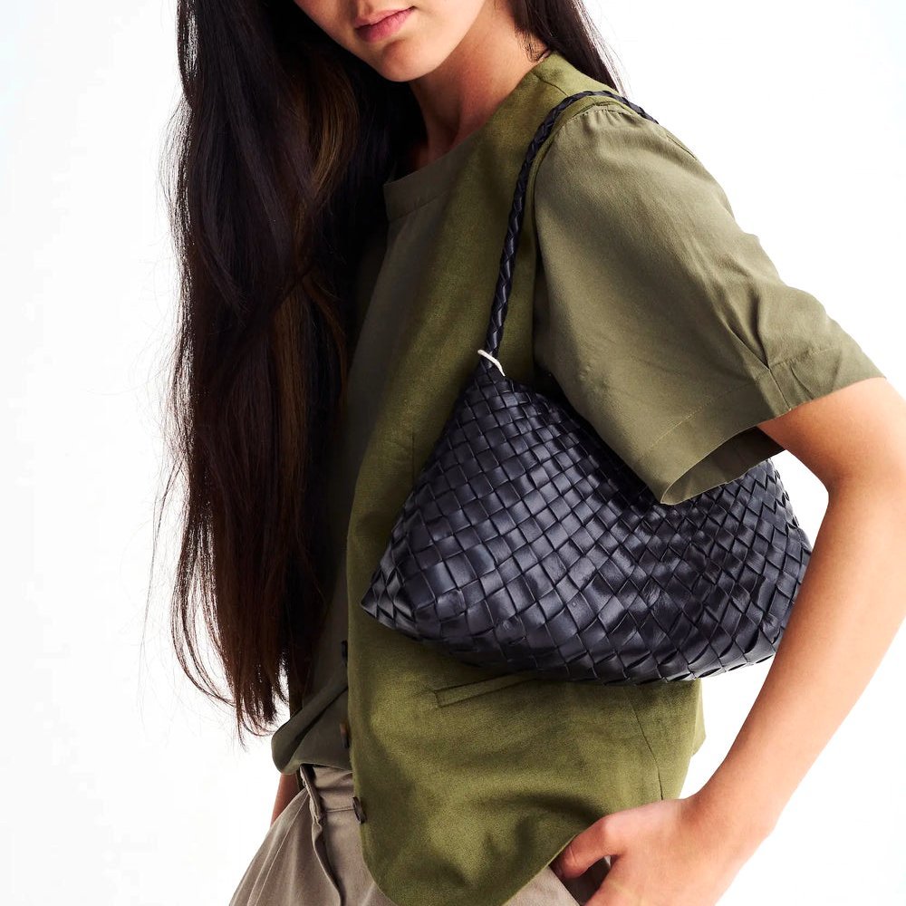 Dragon Diffusion Rosanna is the epitome of timeless elegance and functionality. Crafted with precision and care, Rosanna is a woven leather baguette bag that effortlessly combines style and practicality. Its unique silhouette offers versatility, allowing you to effortlessly drape it over your shoulder for easy carrying.