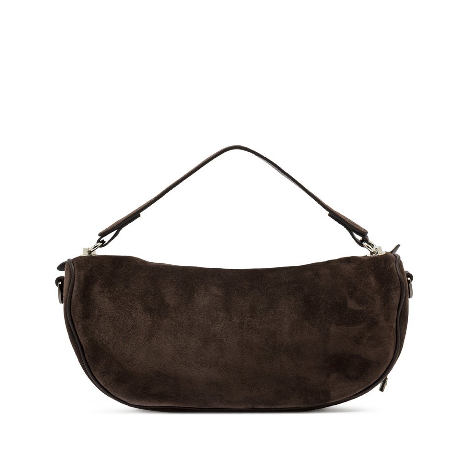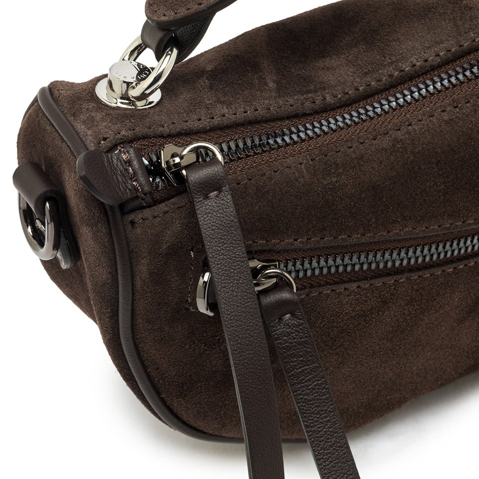 Gianni Chiarini Cindy Moka Leather Crossbody is unique and trendy. This crossbody bag is made in Italy and features suede leather. Gianni Chiarini promotes Cindy in a unique a deep moka colour and features a small size yet spacious with its compact design, this crossbody bag comes with double handles and a branded zip puller. Furthermore, it features a rock and urban look with logoed details outlining the bag. Wear this Gianni Ghiarini Cindy as a handbag or as a crossbody. Moreover, it has one large compartment that secures with a branded zip puller for keeping safe your nesseccities and an interior zip pocket. The Cindy bag also has a fron zip closure pocket and could be your everyday essential this season. Carry this bag by the top handles or by strap to go handsfree. Match your bag with all your looks. From casual outfits to night-out looks, Cindy bag in moka will look great!