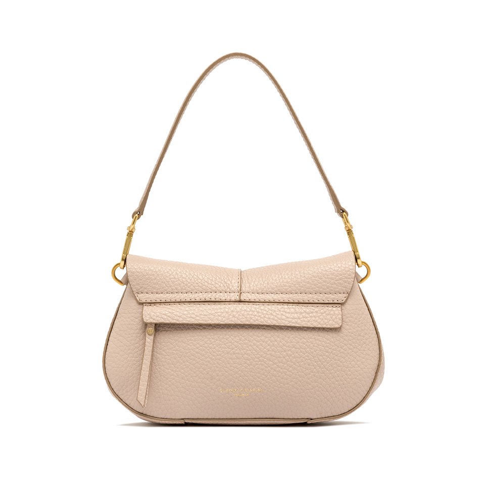 Gianni Chiarini Helena Round Pink Salt Shoulder Bag is contemporary and chic. Moreover, made in Italy, it features premium grained leather quality and materials. Classic but at the same time stylish, it has an adjustable leather shoulder strap in matching colors. Furthermore it consists of a leather handle both removable.  Also, Helena Round Bag is characterized by the typical central seam on the flap. On the back of the bag, there is a hidden flat pocket where you can keep the things you need to have easy access to. Inside you will find two flat pockets and a zip pocket for your keys and phone. Wear this Gianni Chiarini Helena Round Bag as handbag or cross-body, with all your outfits and give a different stylish note to your looks by changing the shoulder strap.
