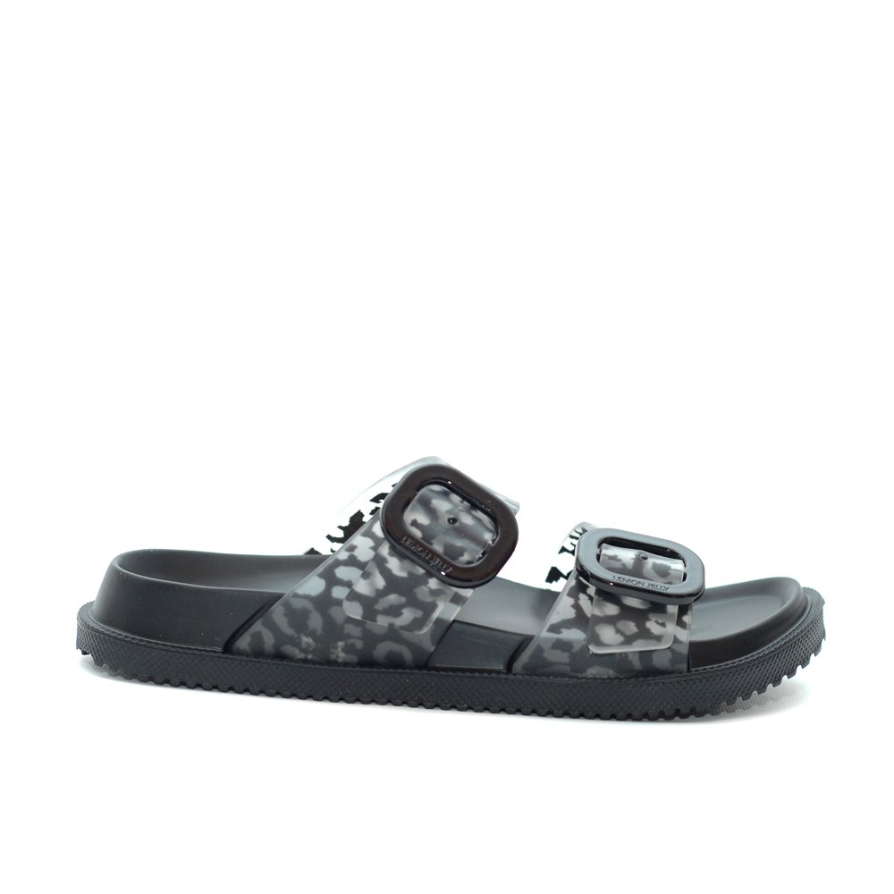 Lemon Jelly Elise Feline Black Buckle Slides are made to finish your summer outfits. Their practical design with adjustable buckles are comfy, safe and ready for any summer splash. Extreme comfort and lightness will make them your summer everyday companion. Their EVA sole is water-friendly and mostly, anti skid to let you walk safely on wet floors at the beach, next to the swimming pool or a dinner out. Wear also your Lemon Jelly flatform Slides with jeans, linen or long skirts and give a modern note to your outfits.