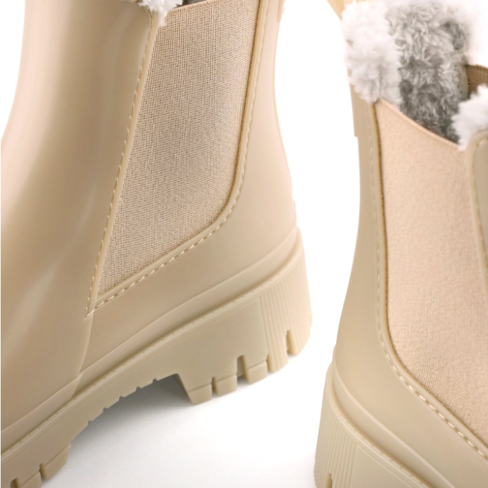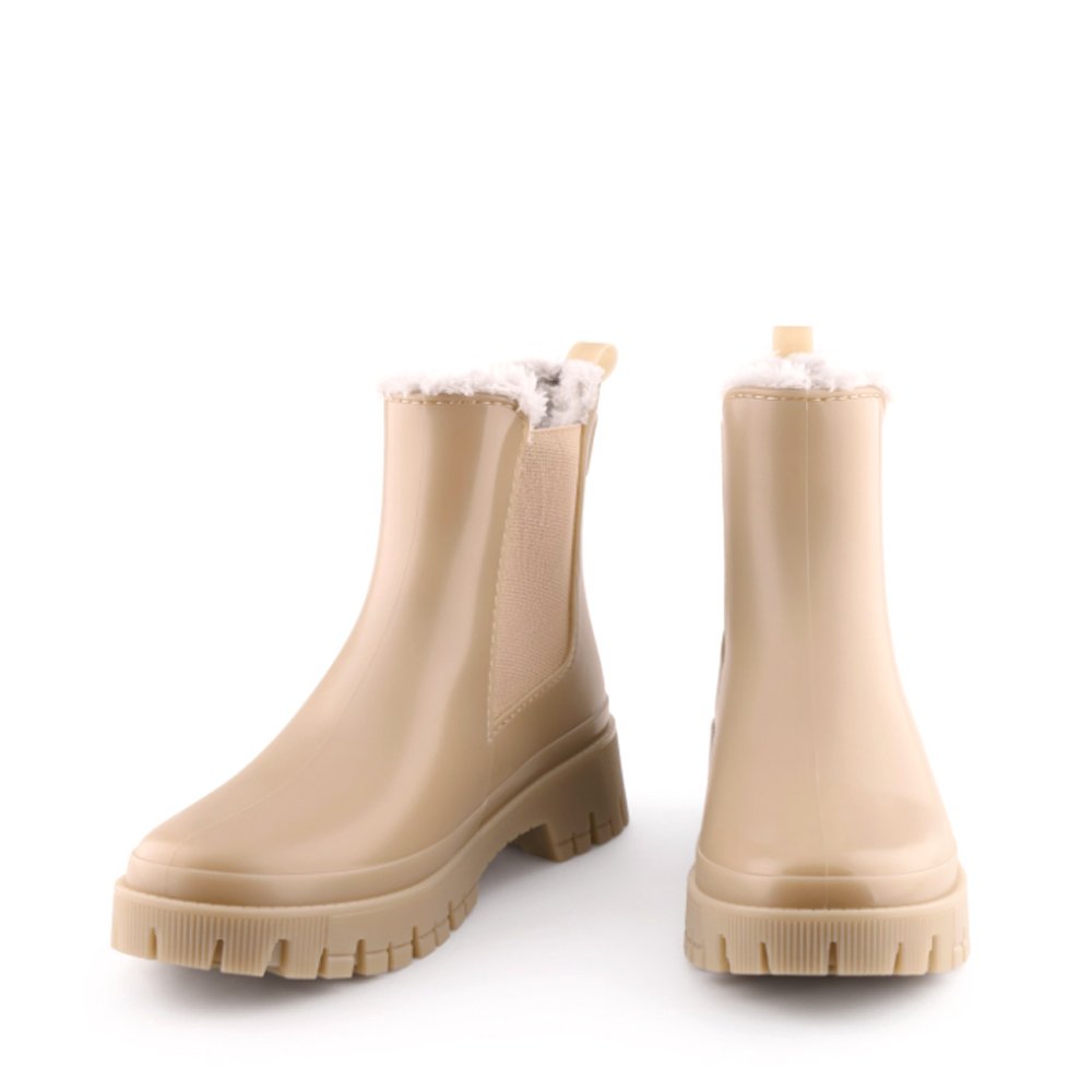 Lemon Jelly Wren Dusty Nude Rain Boots are classic but also strong and feminine. Moreover, designed in Portugal, these Lemon Jelly rain boots feature a super warm fur lining. Furthermore, they have a matte finish. All black, chunky-soled rain boots, the looks will be profound and mysterious, ready for surprise invitations and fun nights out. These Lemon Jelly Wren boots will win your heart with their sweet lemon scent. A pair of super light mid-calf boots will accompany you on the rainy days of the Winter.