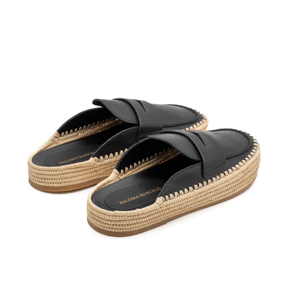 Paloma Barcelo Belinda Black Raffia Loafers