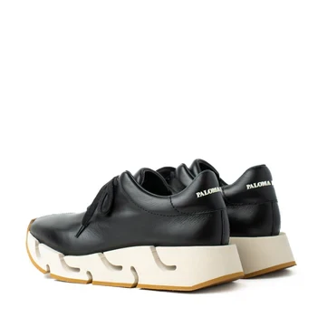 Paloma Barcelo Pia Black Leather sneakers are comfy and stylish. Made in Spain, Pia feature premium leather quality and materials. Moreover, their rubber sole is perfect for anti-skid capacity but also for stability. Furthermore, they have removable leather insoles, which are very breathable. In addition, Pia have a lace-up closure and a soft round toe. Their 4.5cm platform gives a little height but at the same time is very comfortable. Paloma Barcelo Pia sneakers will perfectly accompany you in your everyday tasks. Wear yours with all your casual outfits to give a more stylish note to your everyday looks.