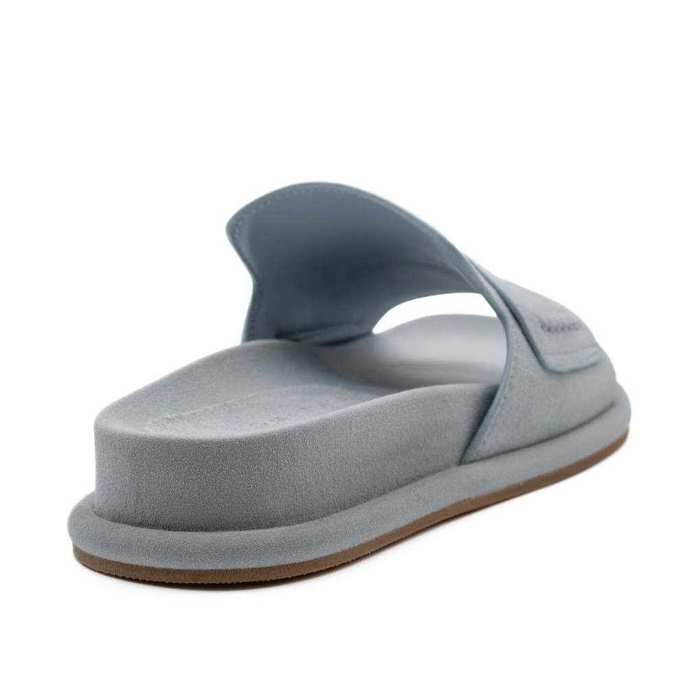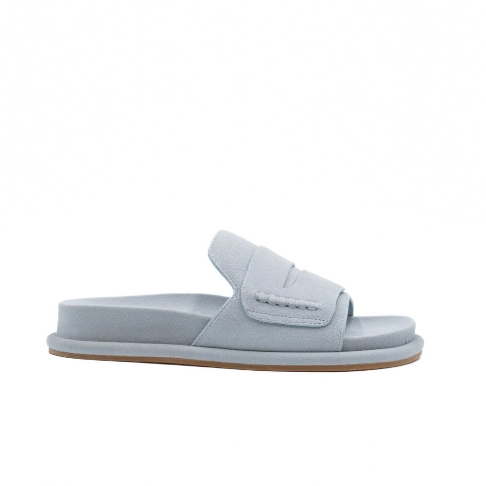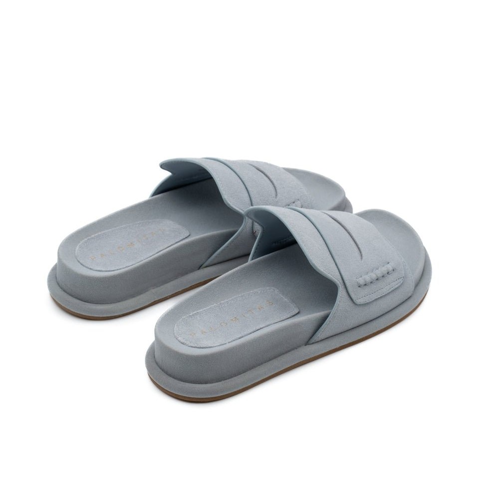 Palomitas Caliope Ciel Suede Slides will convince you this new season. They are so comfortable, functional and nevertheless stylish, with a luxurious feel. Made in Spain, these Palomitas Slides feature premium quality suede leather, with an inside lining of soft suede leather too. Furthermore, their cushioned anatomical insole and round front toe give your feet an incomparable comfort. Also, their rubber sole will assure you safe walks. In addition, you will match effortlessly their refreshing and very trendy Ciel, iceberg-like, color with almost any key piece of your closet. Caliope Slides are also sustainable and have a simple, but unique design, mixing the classic front of a loafer with the ease of a slide. You can wear your fashionable Palomitas Caliope Slides all day long, to elevate your look.