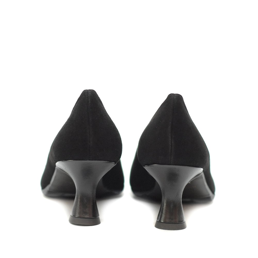 The Bag black suede kitten heel pumps are classic and chic. Moreover, premium quality leather features these pumps. In addition, the black pumps are always a classic choice and a must have on your selection. The cushioned leather insole is so soft and comfortable! The rubber sole is specialized for anti-skid capacity. They are so versatile, so you can wear them with everything from dresses to checked suits.