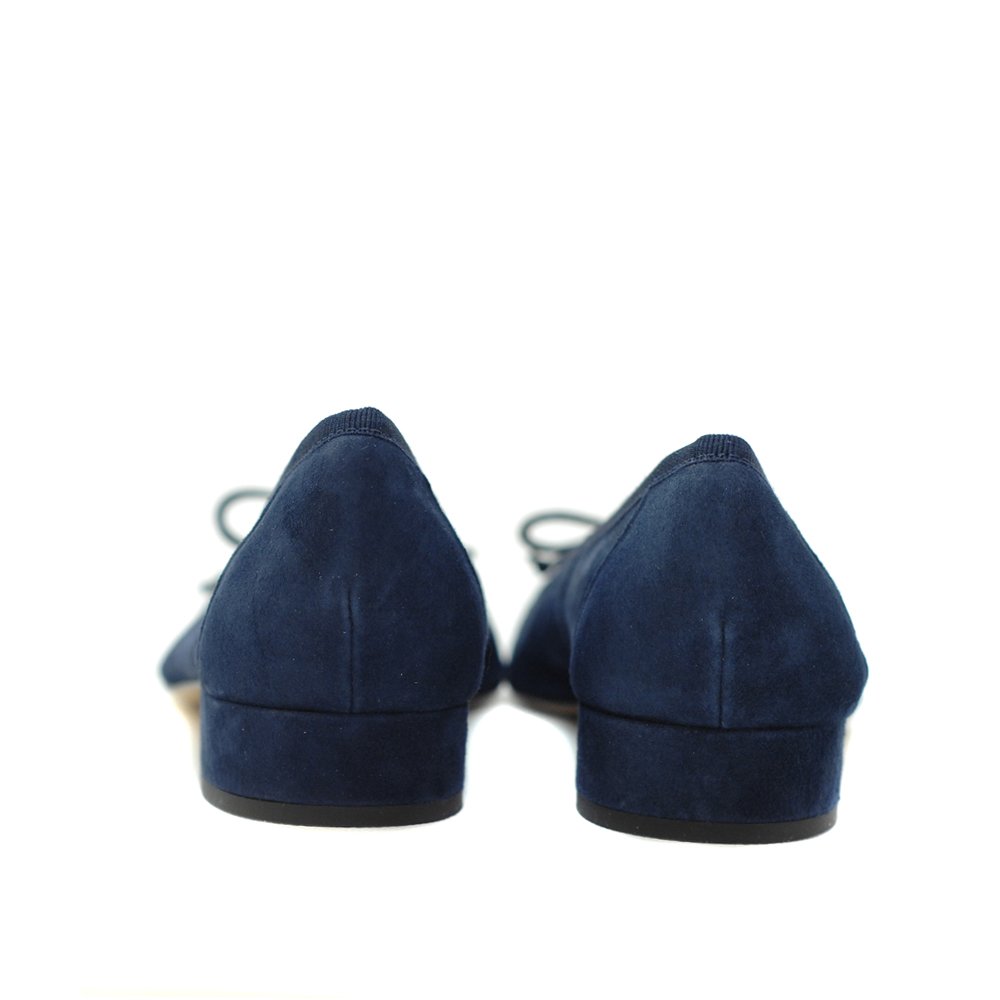 The Bag Blue Suede Ballerinas are a fashionable everyday interpretation of traditional ballet flats. They combine the delicate aesthetic of dancewear with the needs of today’s city life. Made in Italy, The Bag Ballerinas feature a soft suede leather with a round toe, but mostly key to comfort is their cushioned inner sole. Moreover, their versatile color is a classic navy blue easy to wear. The leather outsole is meant for street wear in spring, summer or even autumn. The Bag Blue Suede Ballerinas offer a sleek, souple silhouette, matching skirts, dresses and pants, short or long. They are caracterised by their mix of classy feminity with an edgy, more modern style. Wear them the way you prefer.