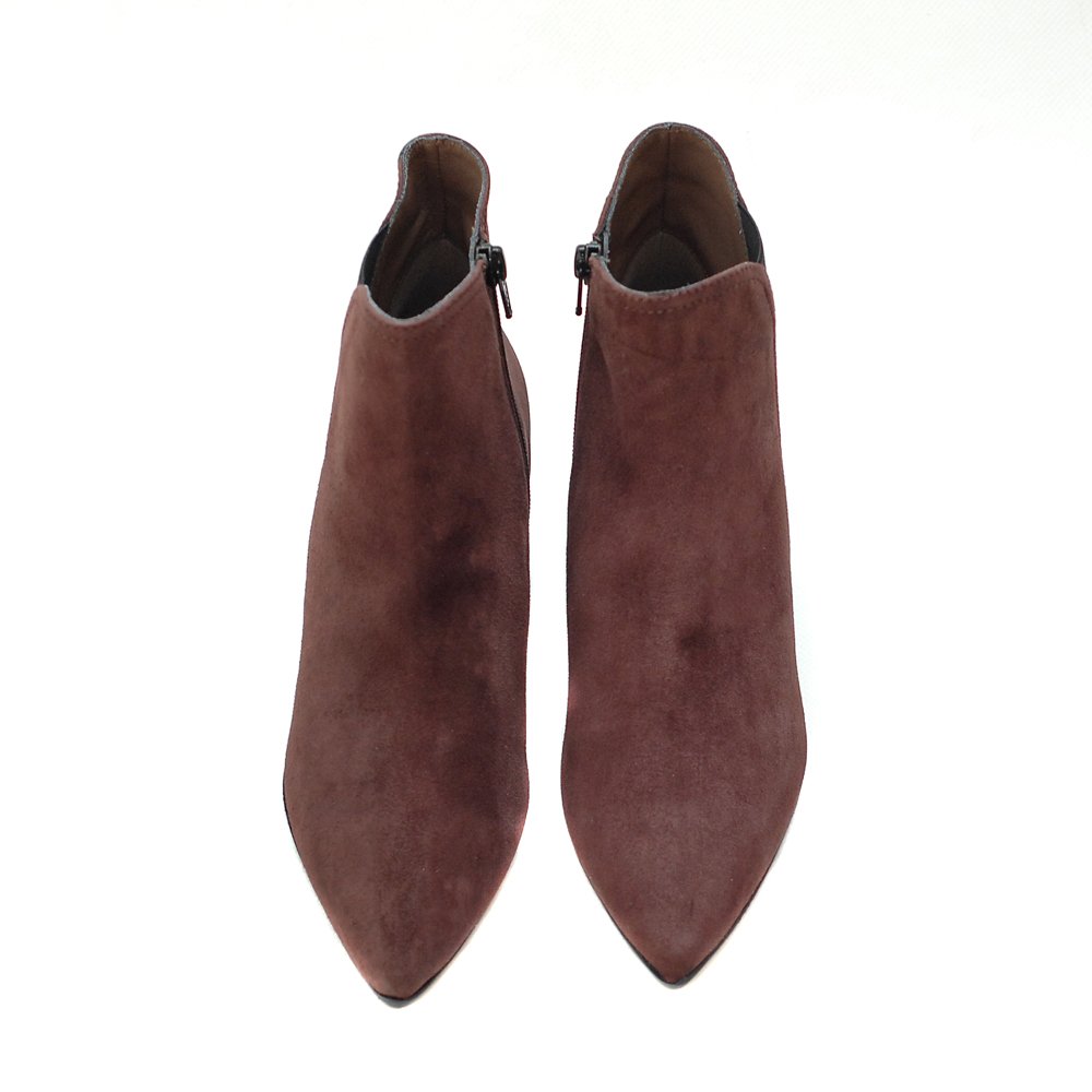 The Bag wine brown suede kitten heel ankle boots are classy and chic. Moreover, premium quality leather features these ankle boots. In addition, the wine brown color on these suede boots is always a classic choice and a must have on your selection.Additionaly, it is the new color for this season. The cushioned leather insole is so soft and comfortable! The rubber sole is specialized for anti-skid capacity. They are extremely comfortable and soft that allow you to wear them throught the day.They are so versatile, so you can wear them with everything from dresses to elegant suits.